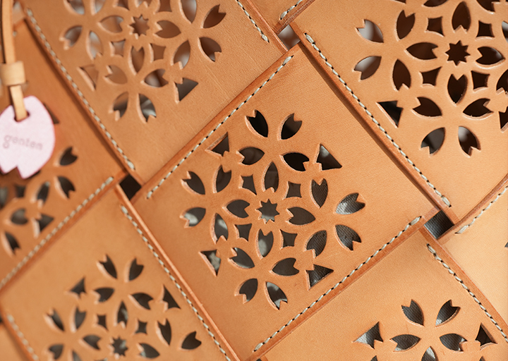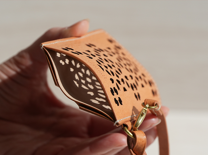 カットワークを施した小さな革のパーツを縫い合わせているのも特長。革を余すところなく使い切るための工夫です。