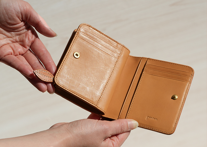 手に持つ姿も美しい、薄さが際立つ「マチなしの長財布」と、軽くコンパクトながら安心の収納力を持つ「二つ折りタイプ」のお財布。そして新生活を彩る「パスケース」。小物は、gentenの他シリーズでも使いやすいと定評のある3型をご用意しました。