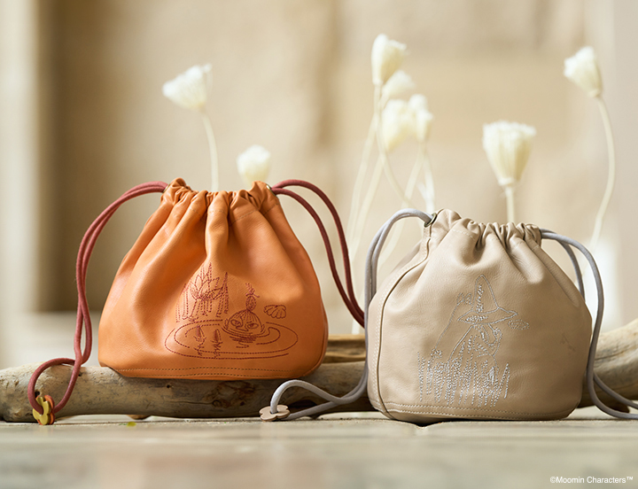 良質なカーフでつくった「サステナブル巾着」にムーミン・バージョンが登場です。革の色と少しだけ明度をずらした刺繍は目立ちすぎることなく、さりげないアクセントとしてお持ちいただけます。