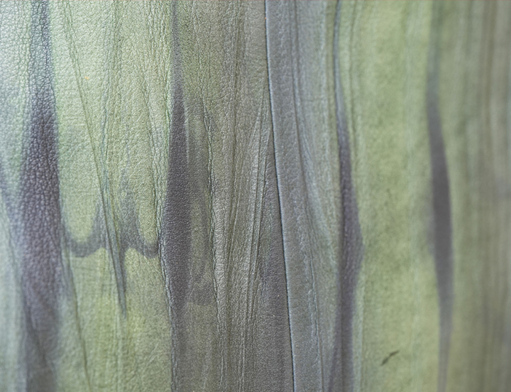 革に絞りを施すことで凹凸の幅や深さ、色の濃淡などに個性が生まれ、ひとつとして同じものがない革に。いくつもの色が何層にも重なり豊かな表情を描きます。