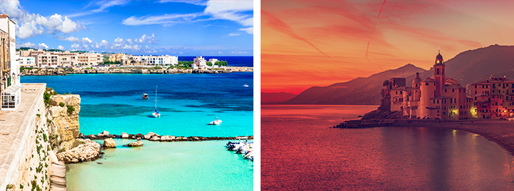 地中海の情景を、革の景色に置き換えた唯一無二の色彩。