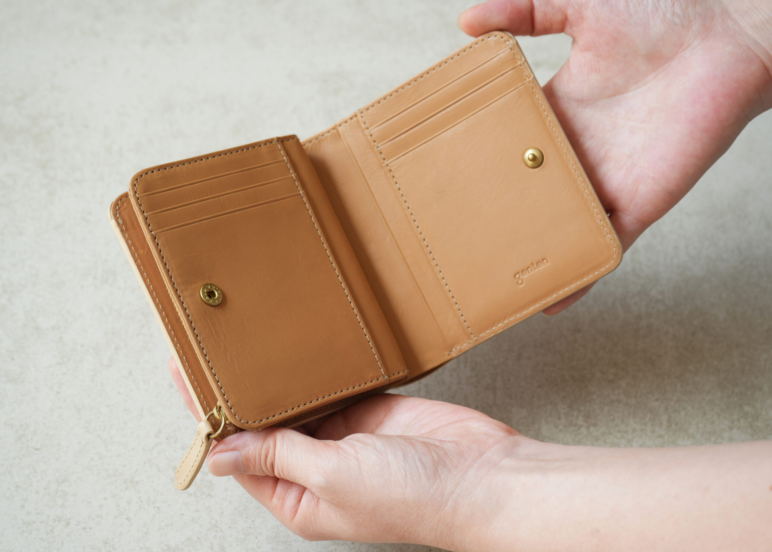 gentenの「マルチカットワーク ミニ」シリーズは、イタリアンレザーの伝統と技術を背景に生まれた洗練された財布です。
