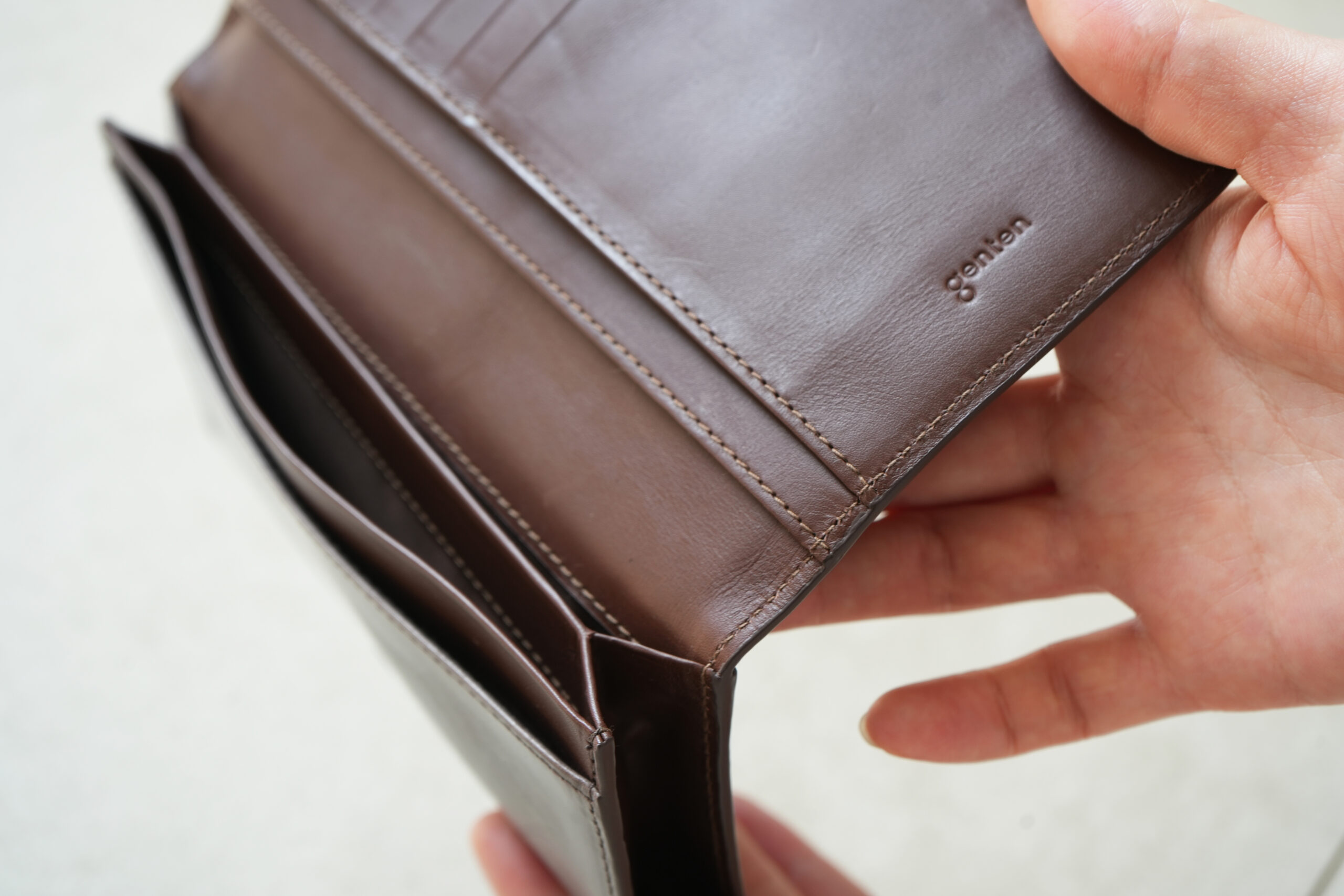 丁寧な仕立てが、財布の強度を高めつつ、日常に上品な安心感を与えています。