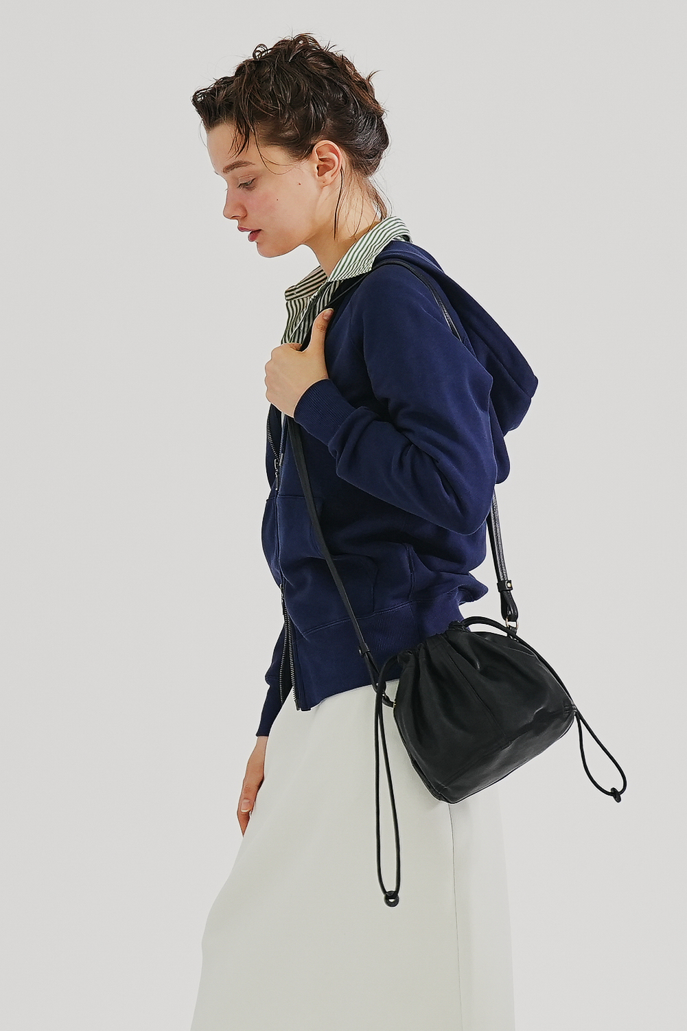 見た目はコンパクトでも、マチがあるため収納力は十分。底が落ちる構造と柔らかな革が相まって、身体に自然に馴染んでくれる。軽量で持ち運びやすく、長時間使っても負担になりません。