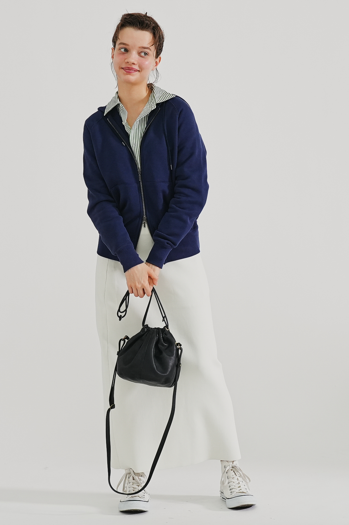 旧型に比べ、新型は長財布が入るサイズ感で、休日の外出や近所のお買い物にぴったり。肩紐は無段階で調整でき、身長やスタイルに合わせて自由に使えます。シンプルだから、季節を問わず自然体のおしゃれが叶えられます。