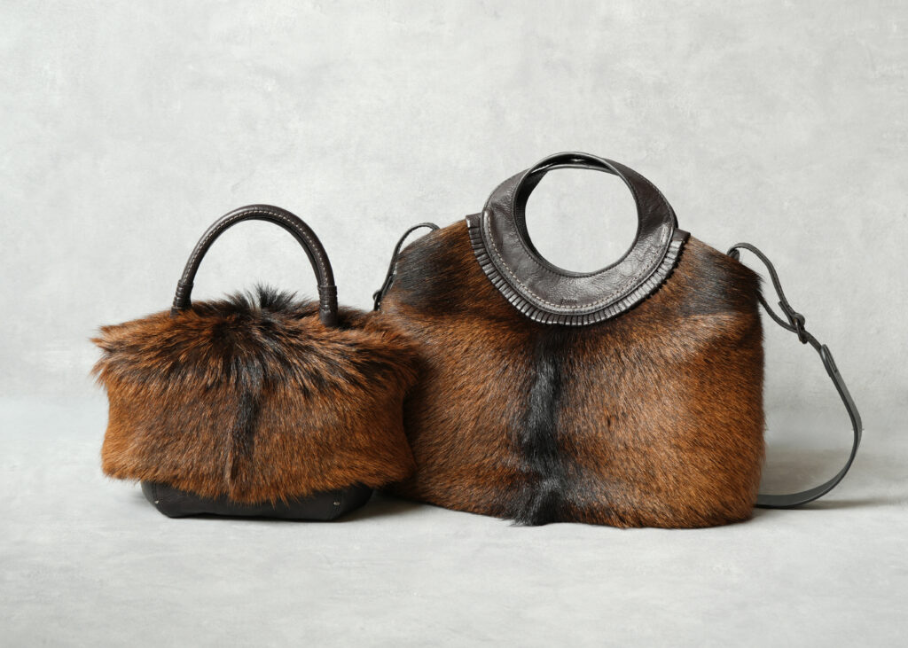そしてこの姿勢は、素材の扱いにも表れています。原皮は一枚ごとに大切に扱われ、傷跡や穴は丁寧に補修。革を余すことなく使い切ることで、貴重な毛皮として新たな命を宿し、バッグへと仕立てられているのです。