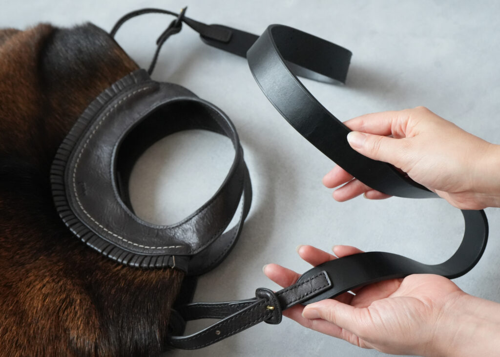 厚口の牛ヌメ革を採用したショルダーベルトは、耐久性が高く、滑らかな質感で肩に優しく馴染みます。ベルト単体でも成立するほどの堅牢さとしなやかさを備え、クラシックかつモードな印象を支える重要なディテールです。