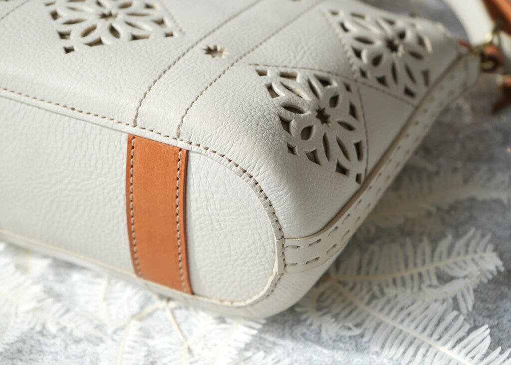 細やかなカットワーク、コバのふのり磨き、焼きねん、ハンドステッチ──。