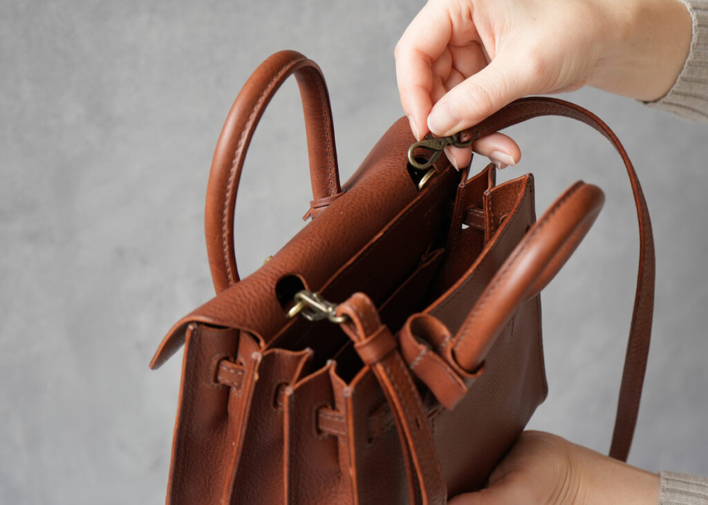 小さなバッグでも革のしなやかさがしっかりと感じられ、上品さと機能性を両立しています。