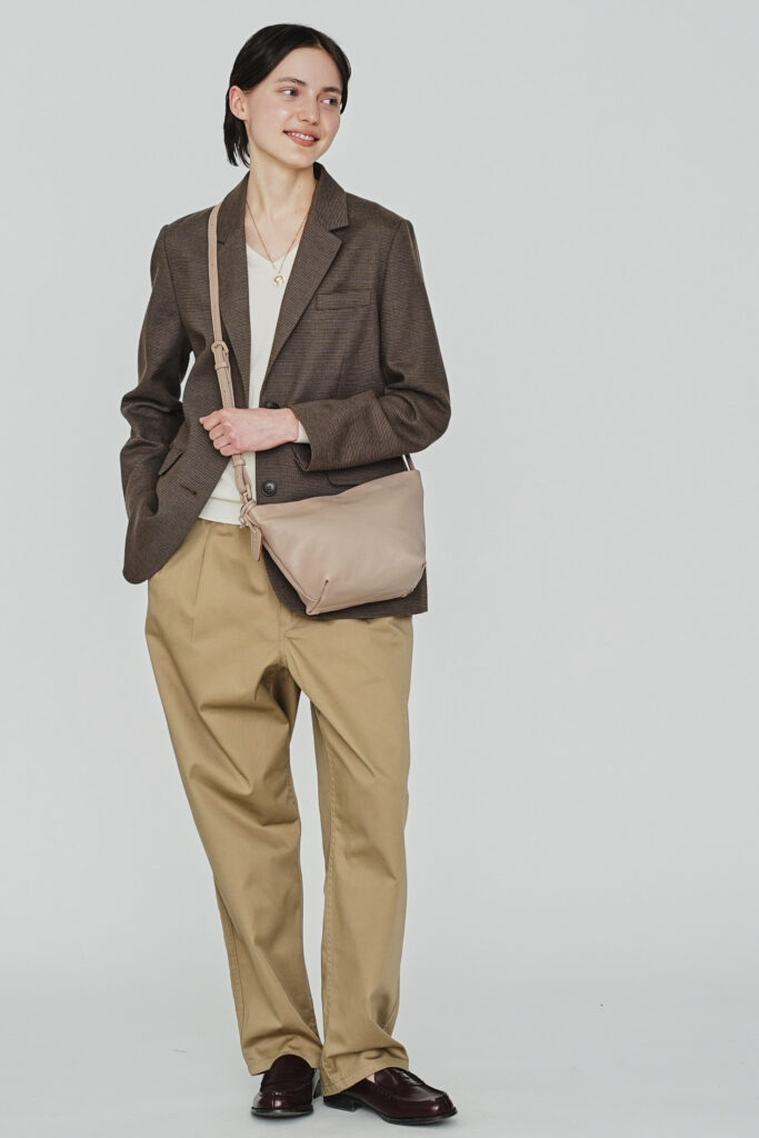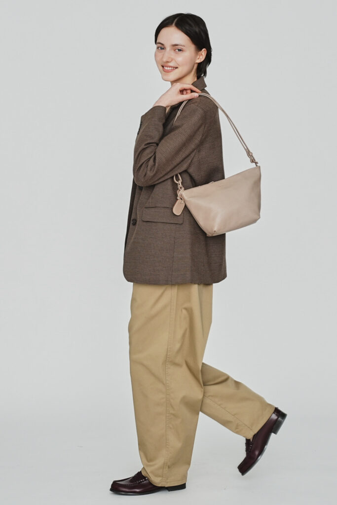 カジュアルな装いにもすっと溶け込み、コートの季節から春夏の軽い服まで自然に馴染みます。