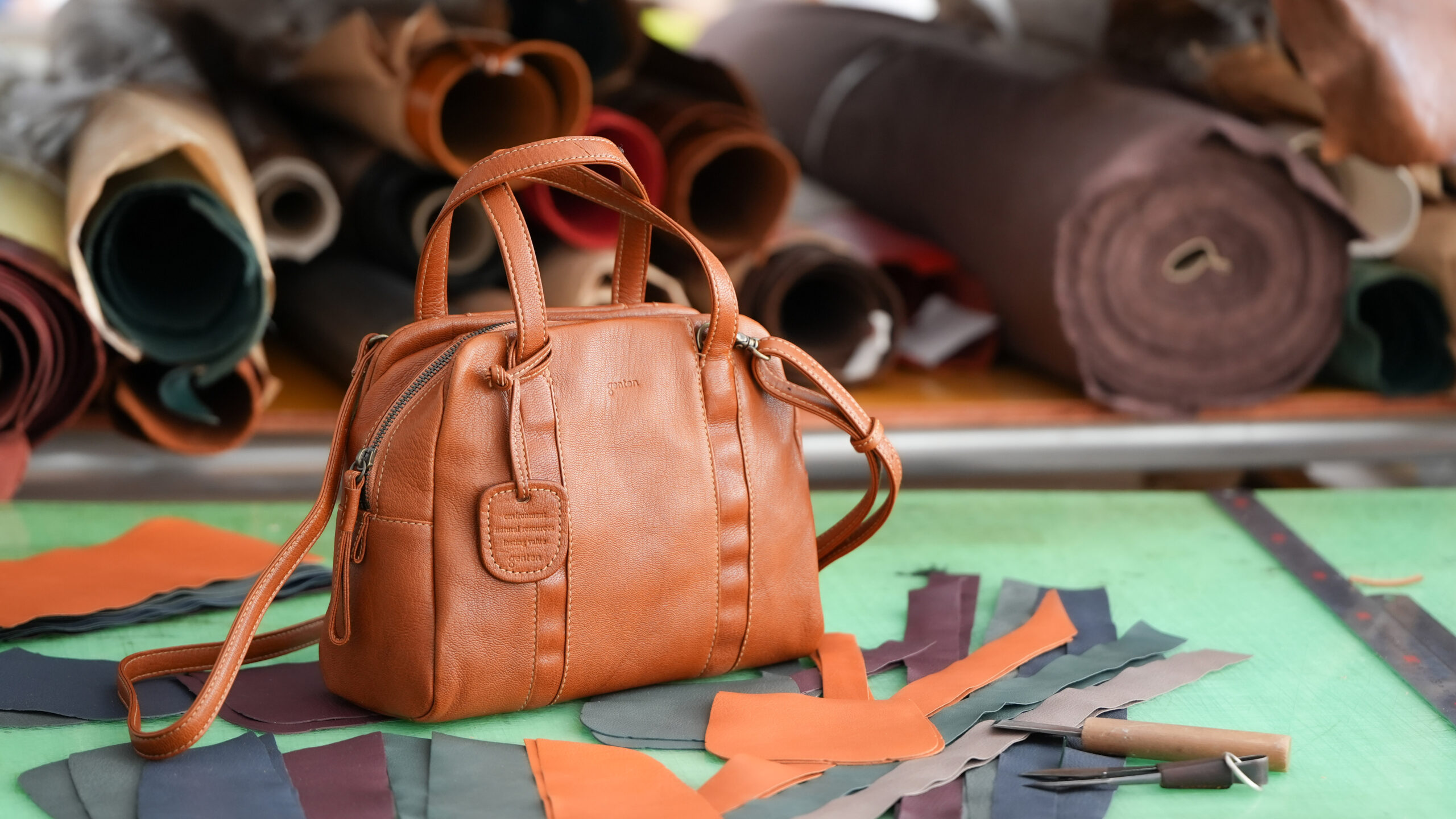 本イベントでは、植物由来のタンニンで丁寧に鞣したgenten定番のレザーバッグ、