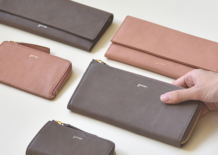 「フレスコ」で使用しているのはゴートですが、キットスキン寄りの小判の革です。財布は、小さな面積の革を有効に活用できるもの。できるだけ無駄が出ないようなデザインを心掛けました。