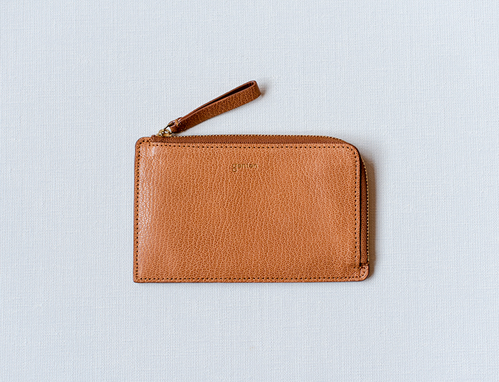 内装にファスナーを用いることなく仕上げているので、薄く、バッグの中でもかさばりません。