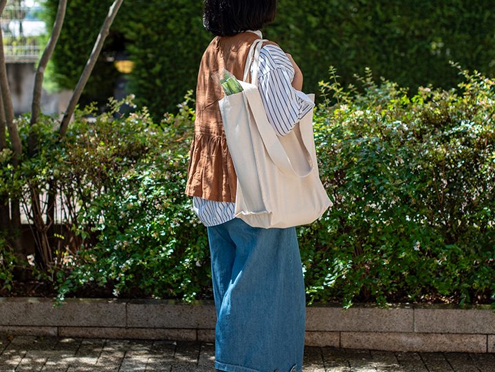 大サイズはグロッサリーバッグとして、毎日の買い物のお供に。