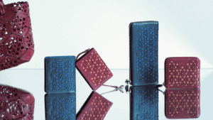 また、一般に、革のバッグは夏には重厚と思われるきらいがありますが、「マルチカットワーク」はもともと風が通るイメージから生まれたバッグであり、抜けが清涼感や軽快さを感じさせるので夏の装いにもぴったりです。