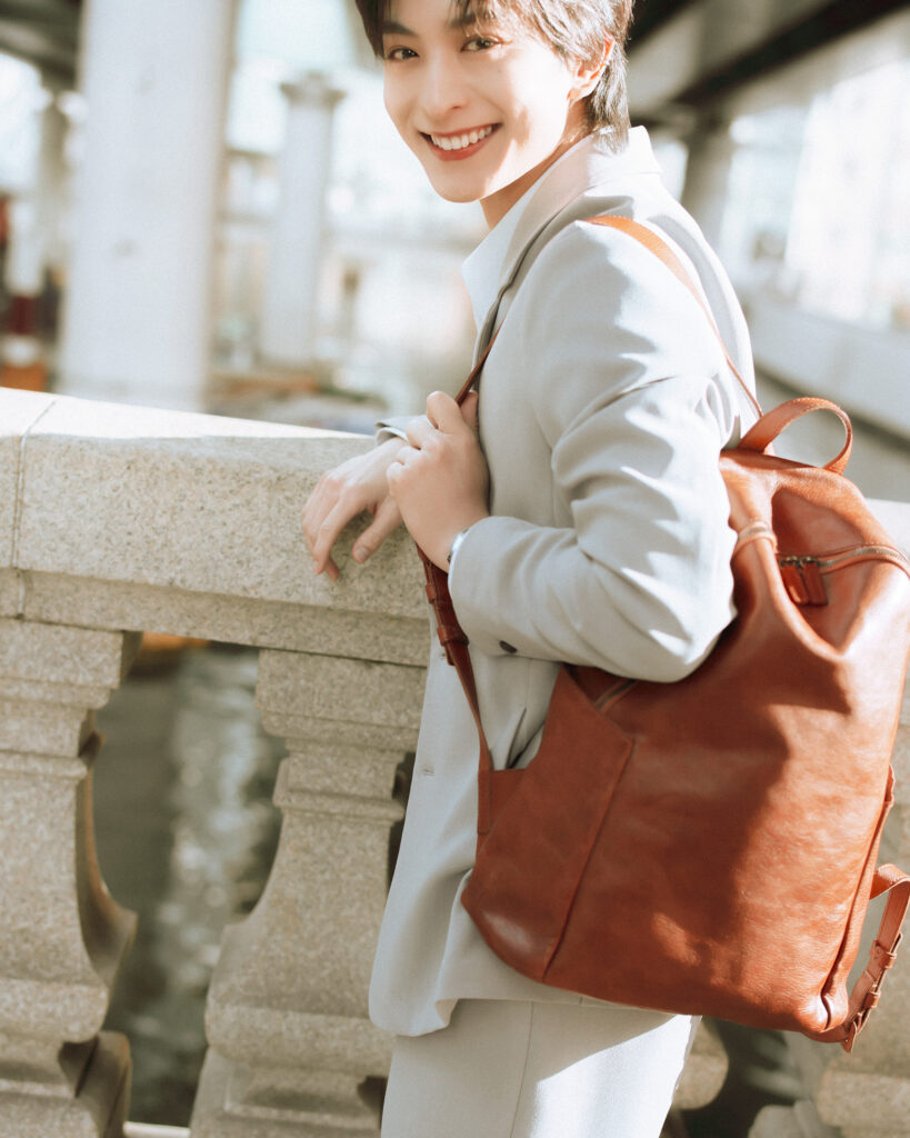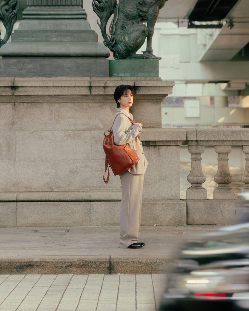 「まずレザーの触り心地のよさに驚きました。手に持った瞬間、肌馴染みがよくて『ずっと前から僕のバッグだった…!?』と思うほどしっくりきました。“レザー素材のリュック”って新鮮だったのですが、シンプルなデザインなので初めての方も取り入れやすいかなと思います。僕は荷物が多いタイプなので、容量がしっかり入るこのリュックはプライベートでも使いたいです」