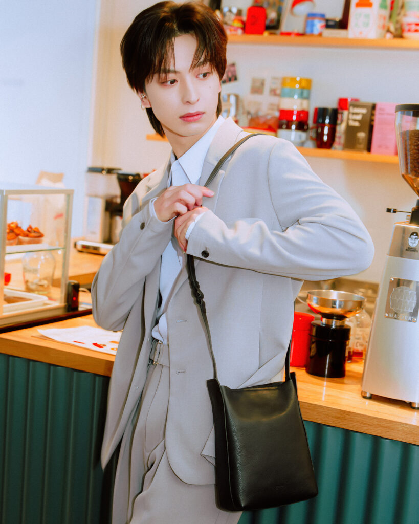 「黒のポシェットやカーキのミニポシェットは、カチッとしたジャケットスタイルにも合うし、カジュアルにも持てて、どんな服にも合うミニマルなデザインがいいなと思いました。手ぶらで歩きたい方や、持ち物が少なめの方にはこの2つがおすすめです。ちなみにカフェのシーンではレザーのキーチャームも一緒に撮影したのですが、これも可愛くてお気に入りです。ロゴの入り方がさりげないところがいいですよね」