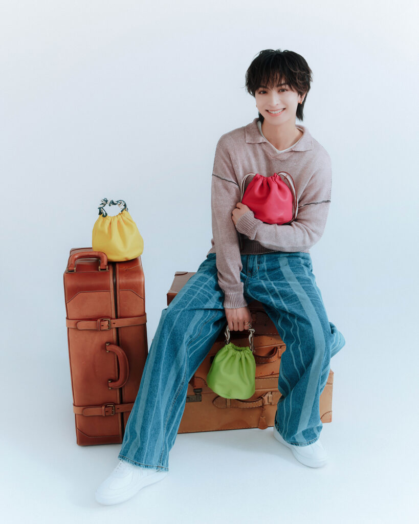 Vol.1に続き、gentenの新作を持って登場するのは、FANTASTICSのメンバー・俳優として活躍の場を広げている木村慧人さん。軽やかなショルダーバッグにブランドのアイコンのトートバッグ、遊び心のあるカラフルなアイテム…それぞれの魅力を語ってくれました。努力家な彼の、仕事への真摯な向き合い方にも迫ります。