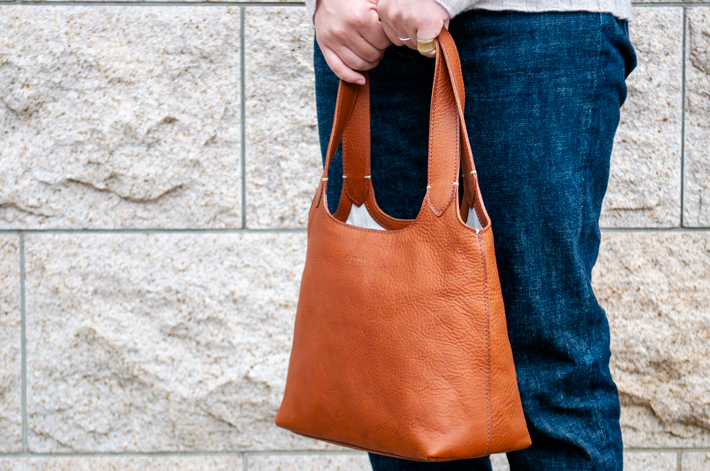 カジュアルながら上品な印象の「手提げバッグ」は、小振りに見えますが、マチ幅を12cmほどとってあるため、見た目以上の収納力があります。