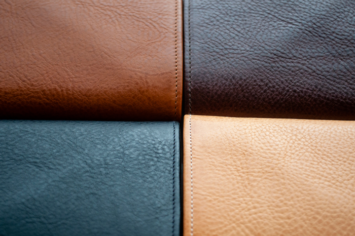 「手提げバッグ」も「横長トートバッグ」もも、カラーは、ヌメベージュとチャ、ノウチャ、ダークネイビーの4色をご用意しました。