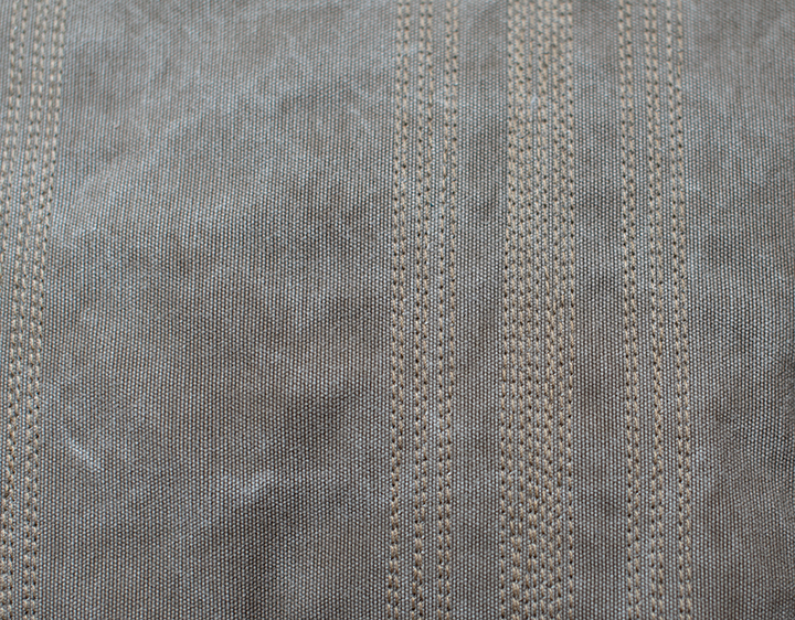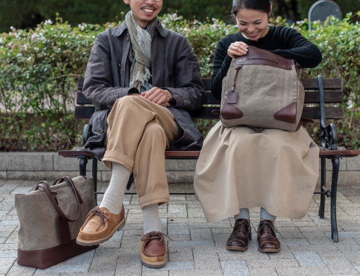 ミモザ・ベーシックの生地は品質の高さで知られる、岡山県倉敷市児島の帆布工場で織られています。昔ながらの“シャトル織機”によって、手間をかけてじっくりと織った、高密度でハリのある生地。だから、丈夫で、水が染み込みにくく、よれにくい。大人がもつにふさわしい上質な生地です。